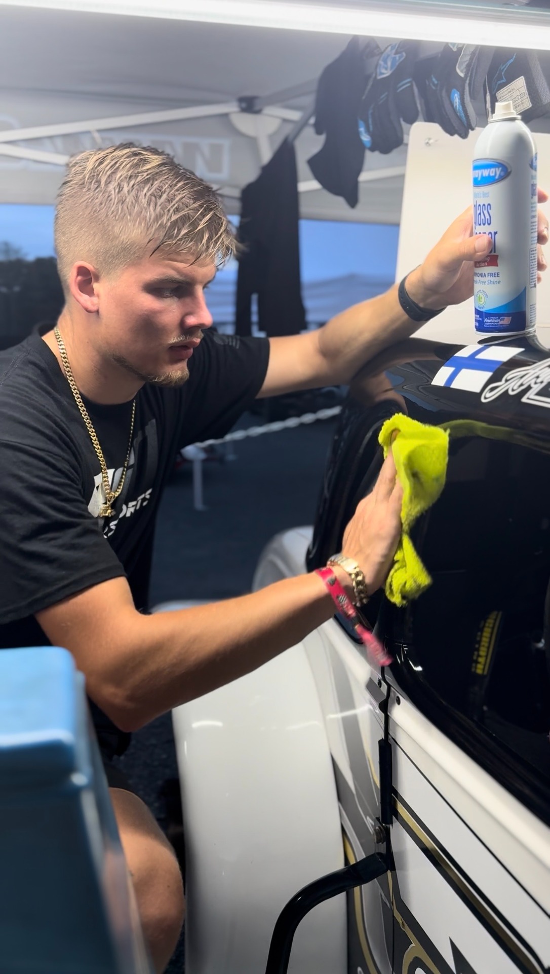 Ensimmäisistä treeneistä lähtien vauhti oli erittäin lupaavaa. Teimme päivän aikana isoja muutoksia autoon ja jokaisen session jälkeen säätö tuntui osuvan yhä paremmin kohdalleen. Viimeisessä treenissä testasimme kilpailussa käytettävää rengassarjaa, joka osoittautui huomattavasti harjoitusrenkaita nopeammaksi. Siinä vaiheessa tiesimme, että kilpailussa pystytään ajamaan voitosta. Samassa treenissä useat kärkinimet ajoivat kisarenkailla ja olimme heitä selvästi nopeampia.